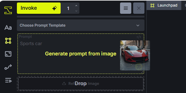 To generate a prompt from an image, you can drag an image into the prompt box or upload an image directly by selecting 'Upload Image for Prompt Generation' from the menu.