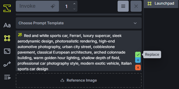 Once the prompt has been generated, you can either replace your existing prompt with the generated prompt or add it to your existing prompt using the respective button within the prompt box.